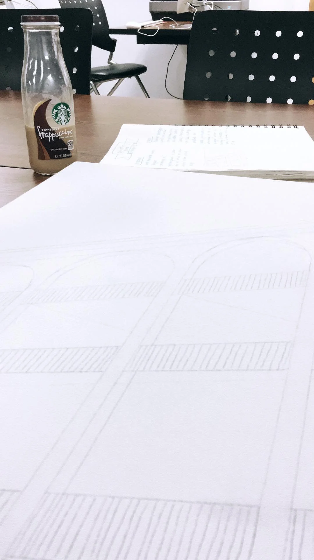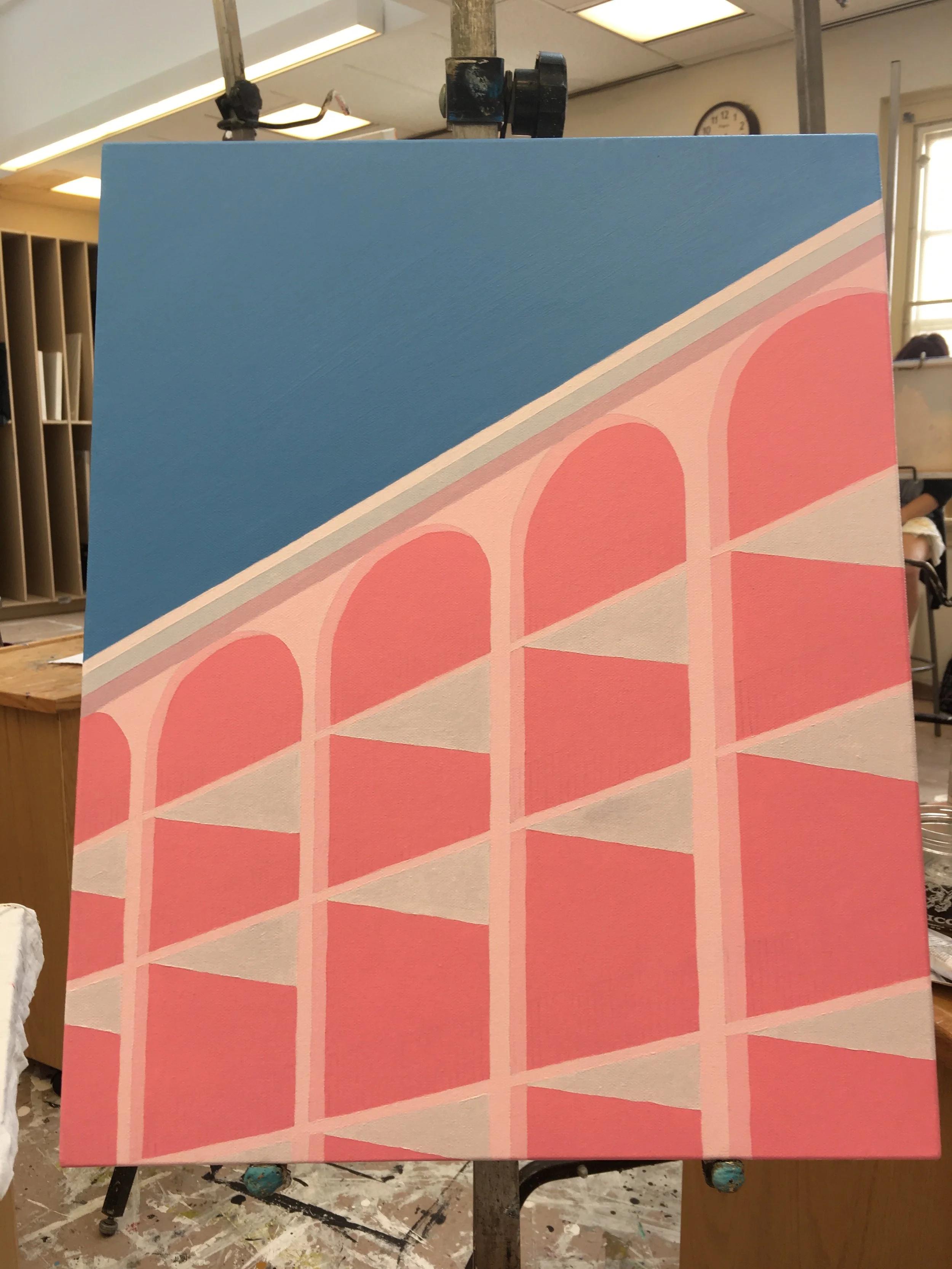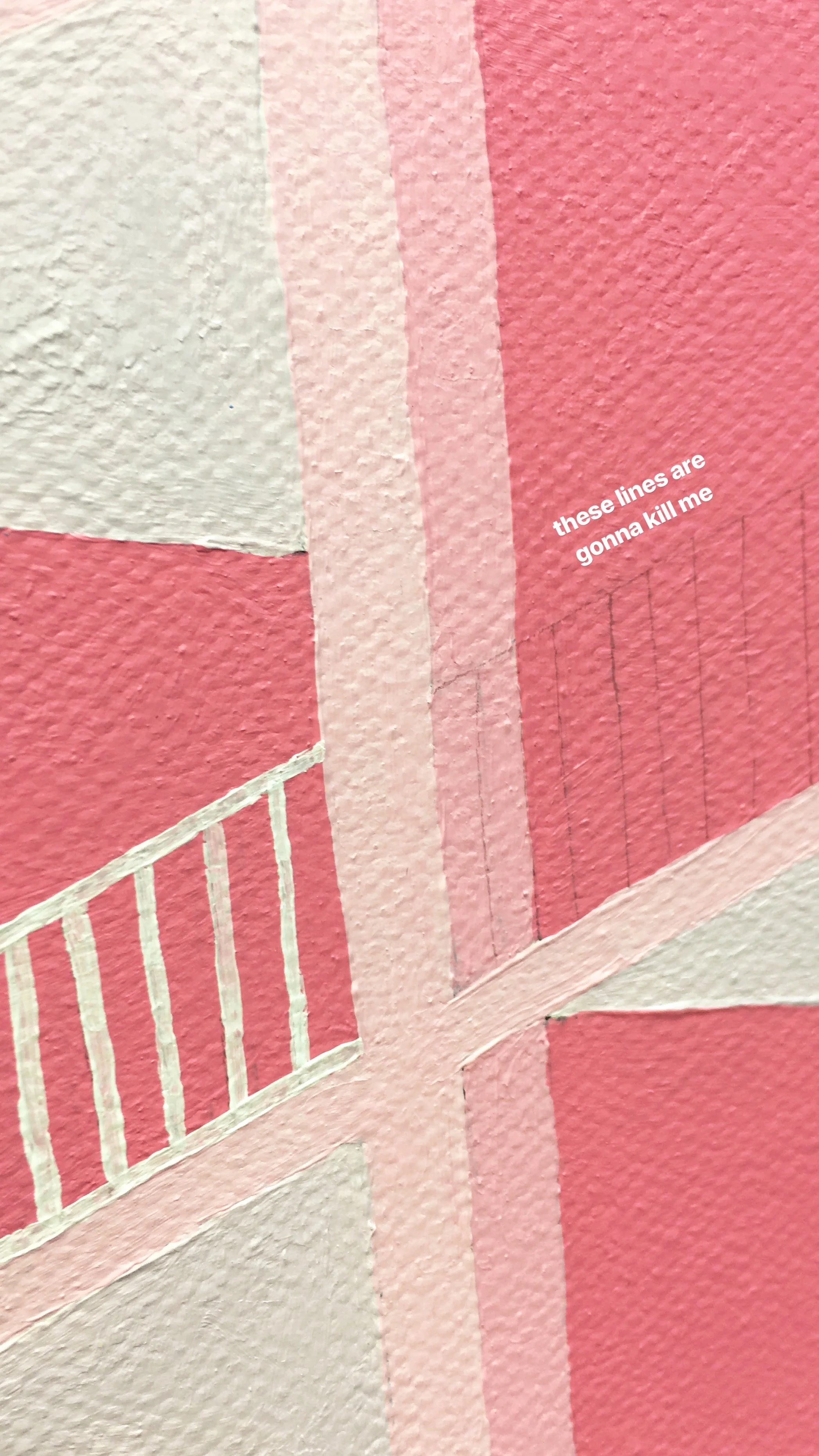 I took a photo while on vacation in Bermuda and immediately, I knew I wanted to recreate it as a painting. I began with sketches on paper before translating to paint and canvas. All of the intricate line work was freehanded.